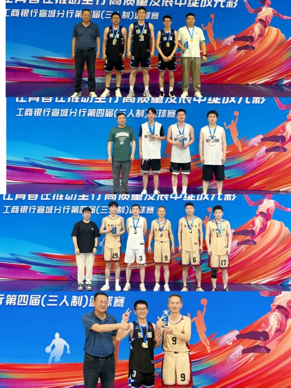 经过激烈角逐,绩溪支行斩获冠军、宁国支行获得亚军、机关本部1队获得季军,比赛同时评选出最具价值球员奖。宣城分行丁伟副行长,办公室(工会办)、团委负责人为获奖队伍和球员颁奖,通过此次比赛,进一步丰富广大员工业余文化生活,凝聚青春奋进力量,彰显昂扬精神面貌和团结协作能力。